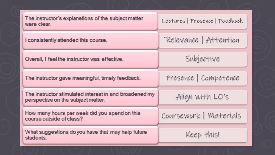 Join this quick session to learn some tips on how to make the most out of your course evaluations to enhance the student experience, and hopefully yours as well.